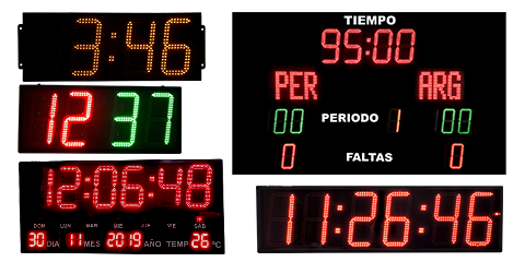 En esta sección encontraras Marcadores Deportivos, Cambio de Jugador, Paneles conectados a traves de internet, Relojes LED, producidos para el sector deportivo. Creados para estadios, canchas deportivas, polideportivos, gimnasios, clubes, etc.